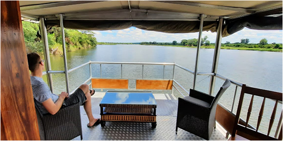 Um zirca 12H00 gehen unsere Gaeste an Bord ( fuer 2,5 Stunden ) wo Ihnen ein grosses Sortiment von Snacks angeboten wird . Diese Haeppchen werden auf dem Boot zubereitet und Gaeste werden zum Verwoehnen eingeladen um den Okavango Fluss so richtig zu geniessen. Dazu werden verschiedene alkoholische Getraenke wie z. B Sekt, Cocktails, Aperol und saemtliche Weine angeboten. Natuerlich gibt es auch Bier vom Fass und nicht-alkoholische Getraenke! Nach der Flussfahrt (zirka 15h00) gehen unsere Gaeste auf eine Pirschfahrt in den Westlichen Caprivi National Park ODER den Mahango National Park. Dieser endet nach 3,5 Stunden mit einem Sundowner wo Ihnen Getraenke, Nuesse, Biltong, Trockenwurst und Chips angeboten werden. Ab 19h00 geniessen Sie dann Ihr Abendessen auf der Mahangu Safari Lodge!
